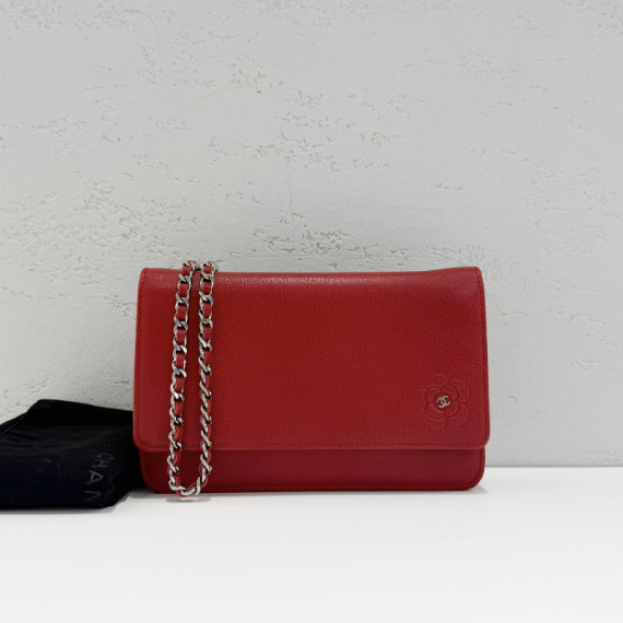 샤넬 까멜리아 WOC 레드 은장 크로스백 16번대
