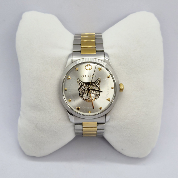 구찌 G 타임리스 캣 38mm 메탈 남녀공용 시계 YA1264074